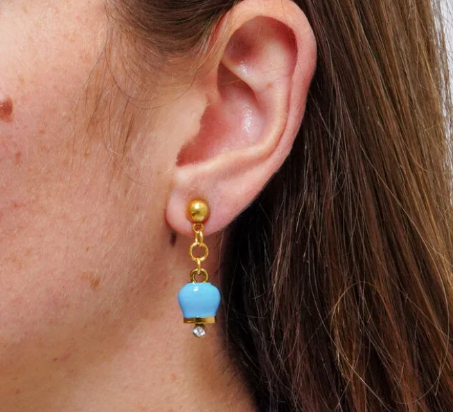 Orecchini Amo Capri con campanella pendente smaltata in azzurro con base gold