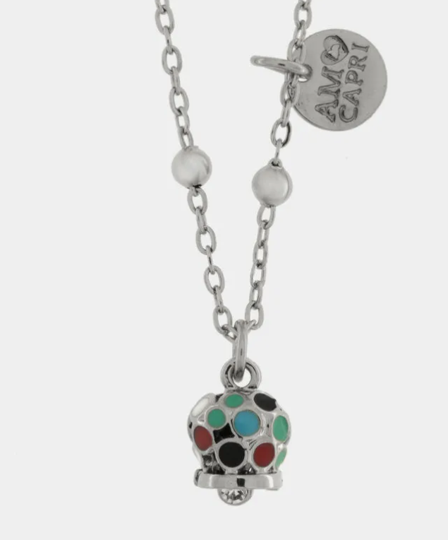 Collana in Acciaio con campanella pendente impreziosita da smalti multicolore