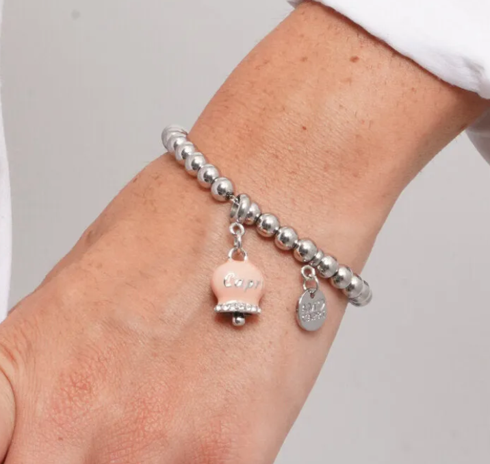 Bracciale amo capri con sfere e campanella smaltata rosa