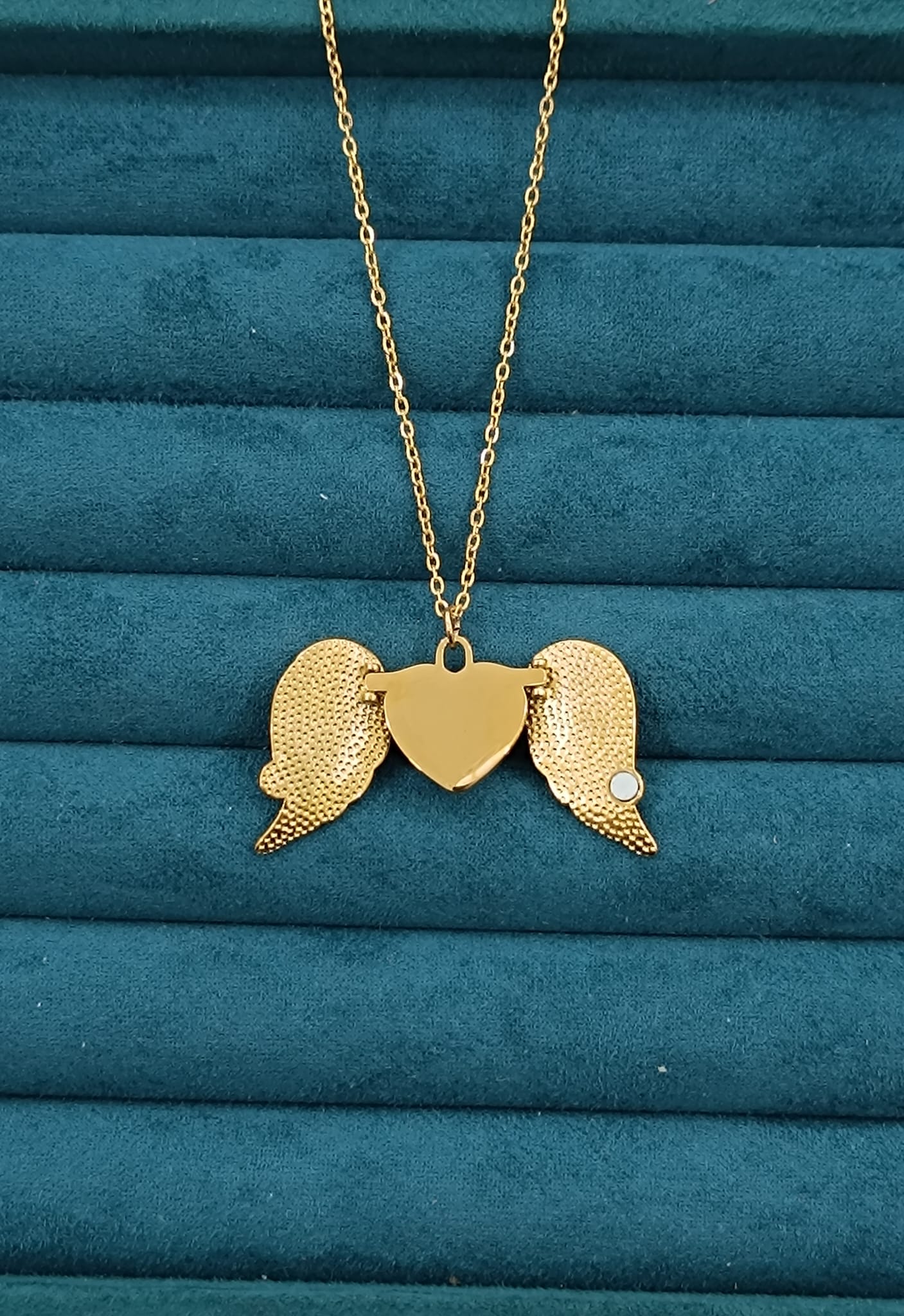 Collana in acciaio 316L con CUORE CON LE ALI che si aprono e svelano un messaggio.