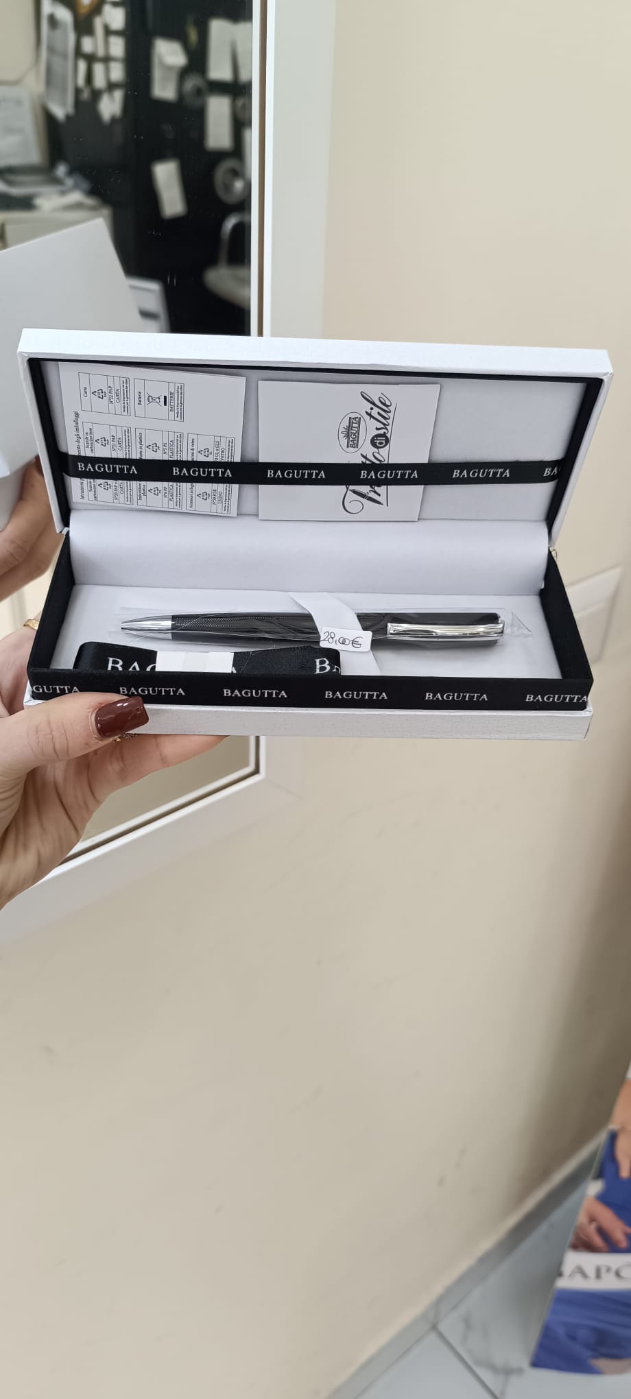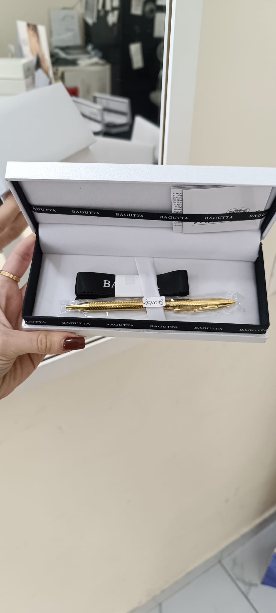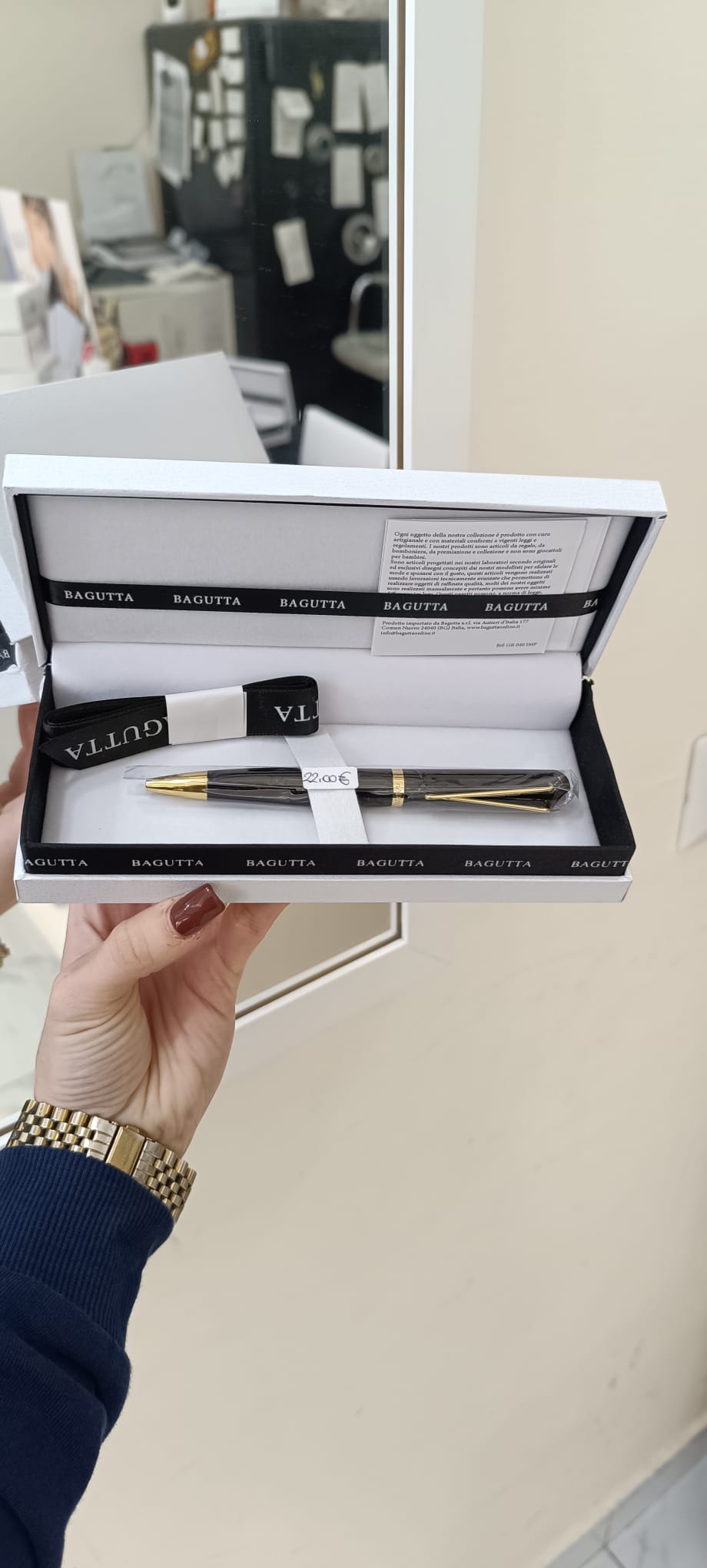 - Penna sfera laccata nera con finiture in metallo ufficio finiture oro
