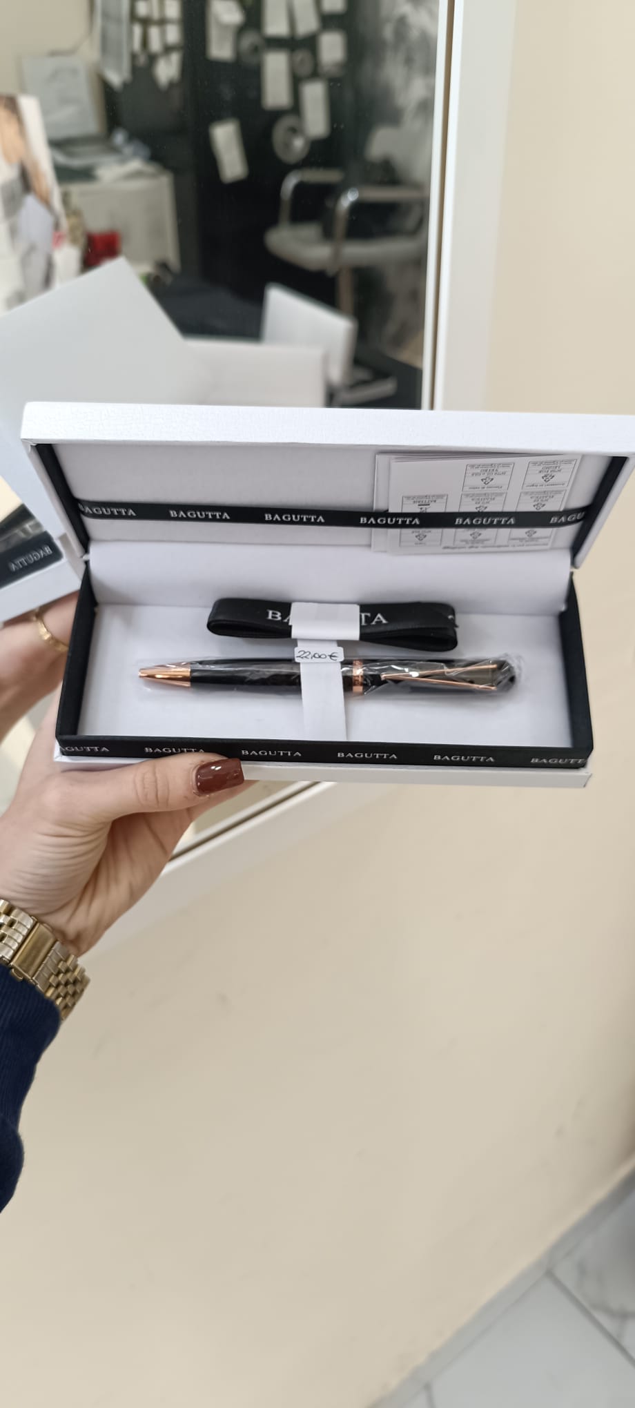 - Penna roller laccata nera con finiture in metallo ufficio finiture rame