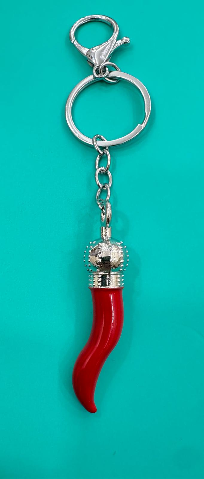 Portachiavi in acciaio con corno smaltato rosso 6cm ( solo il corno )