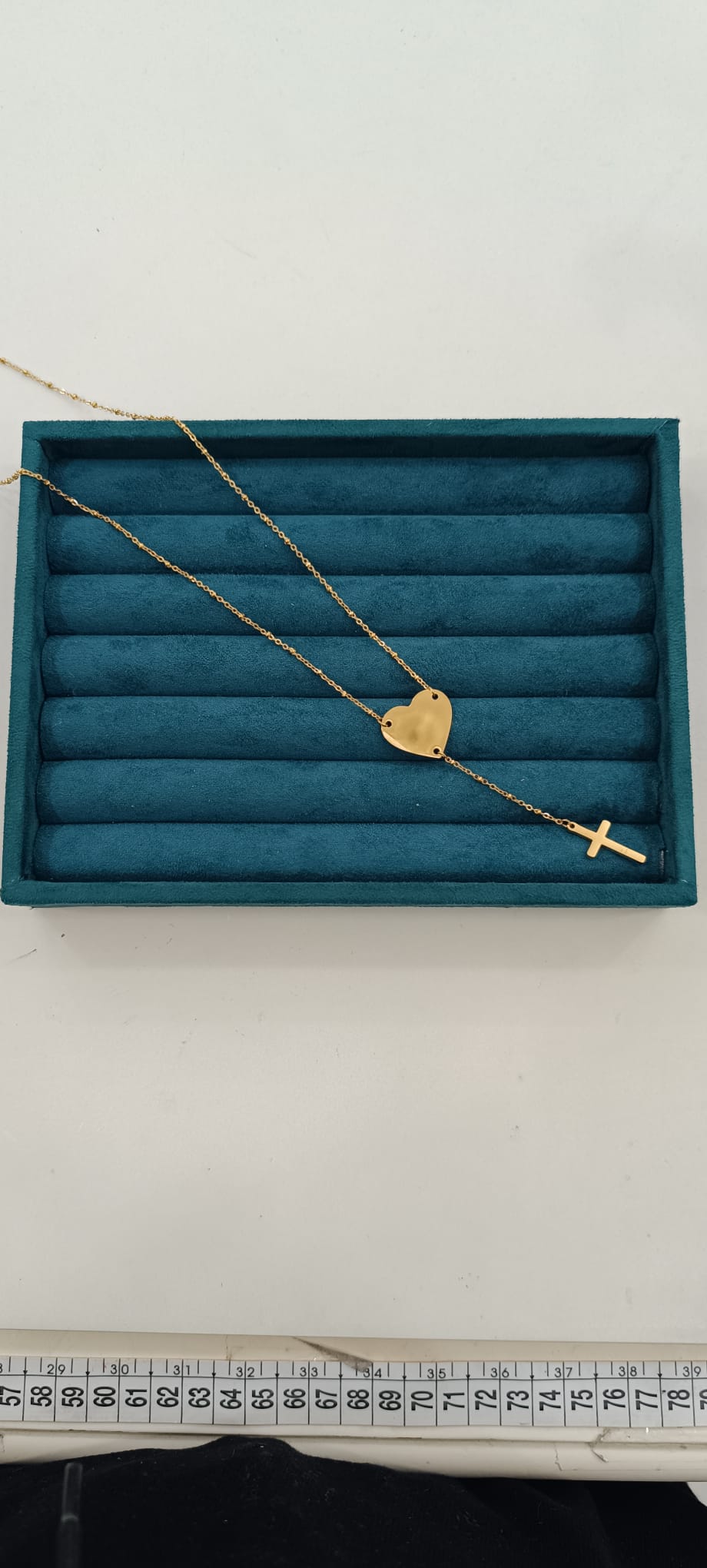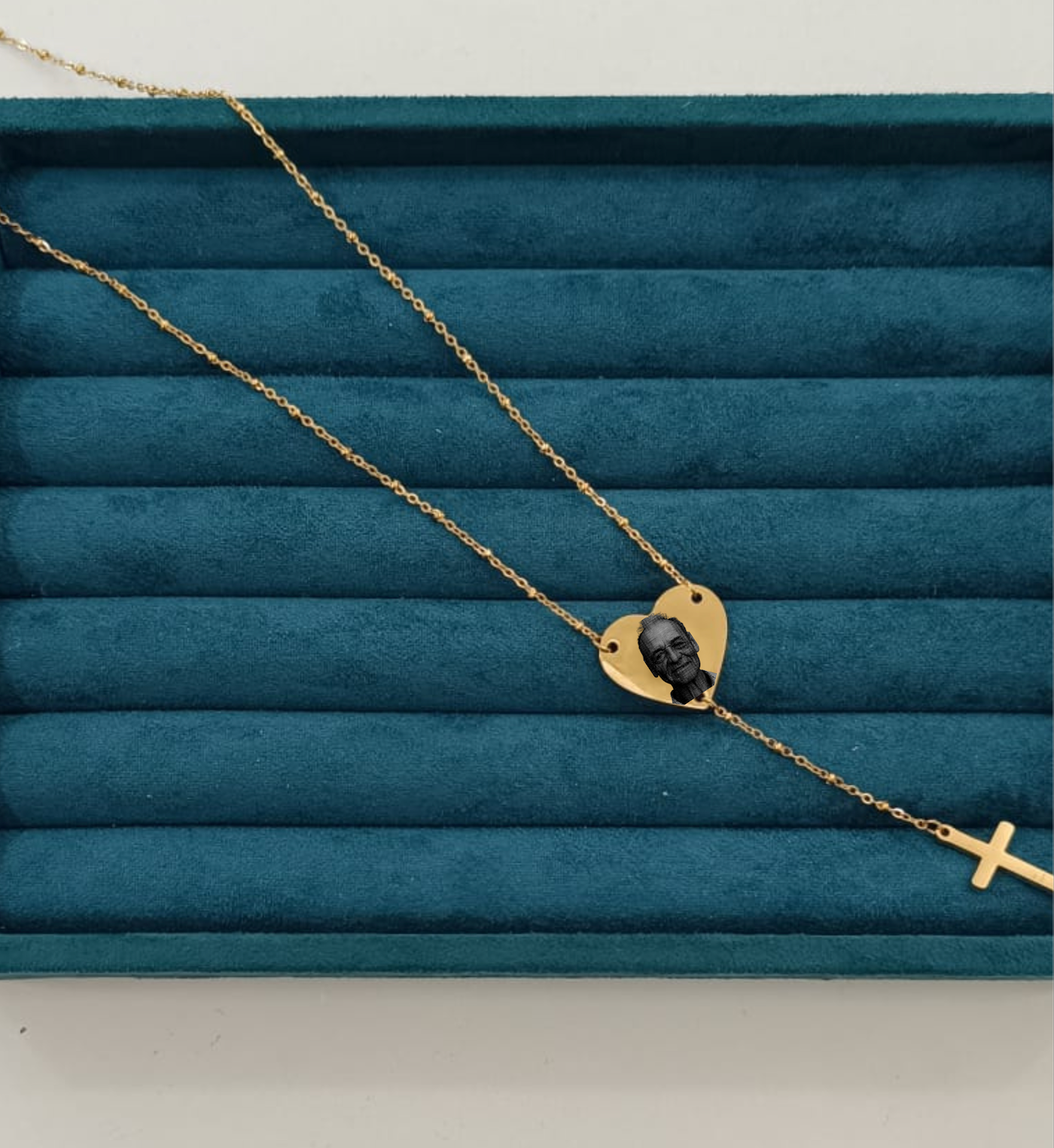 Collana Rosario con ciondolo cuore centrale, in acciaio 316L personalizzabile con incisione lettera o con foto incisione