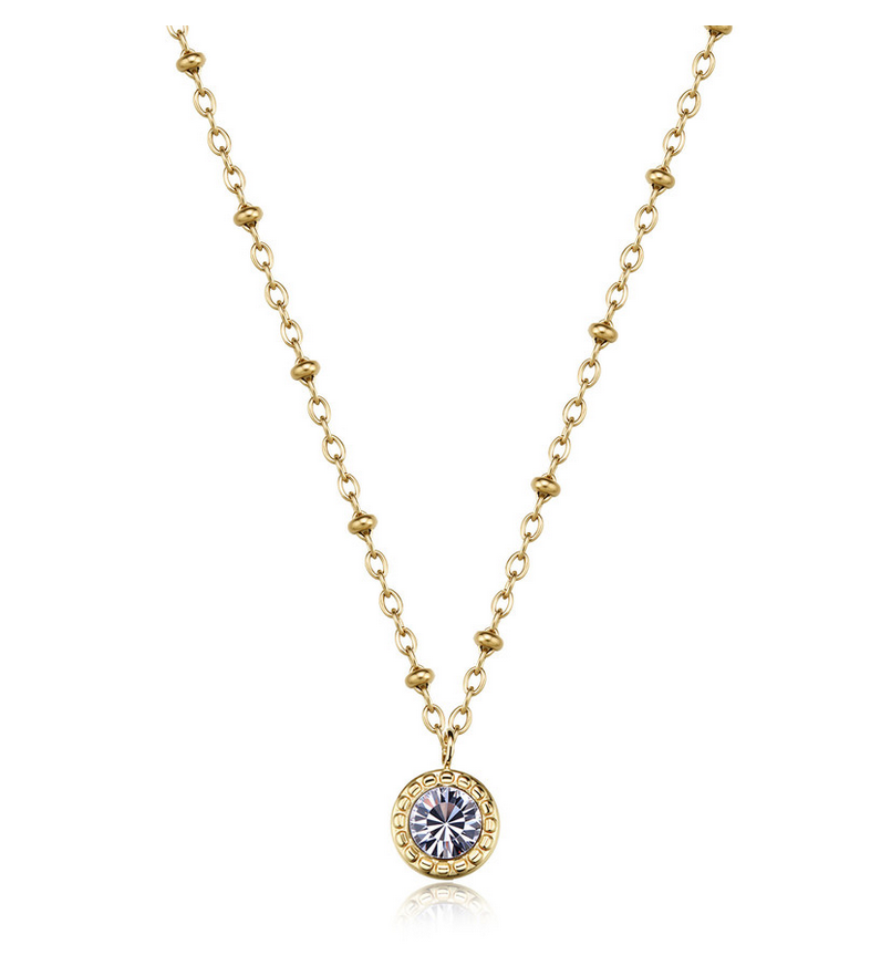 Collana in acciaio 316L con finitura pvd oro 14K e cristallo pendente.