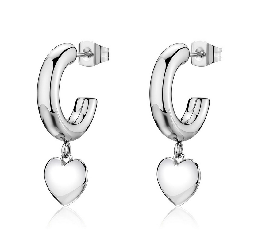 Orecchini a cerchietto in acciaio 316L con pendenti a forma di cuore.