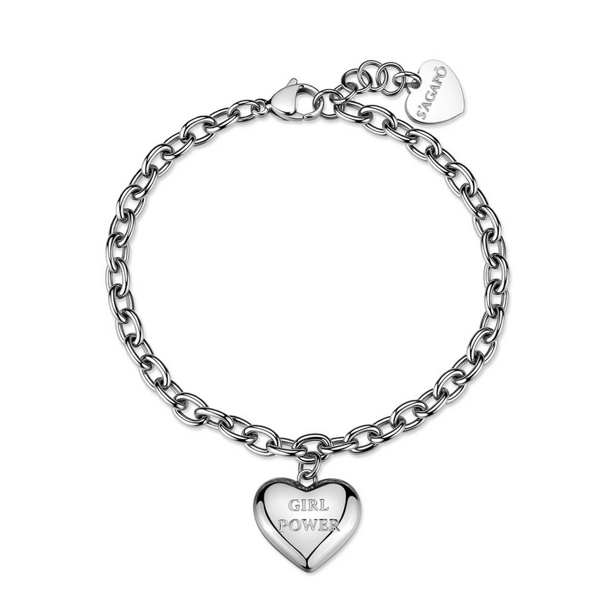 Bracciale catena in acciaio 316L con pendente a forma di cuore e incisione "Girl power".
