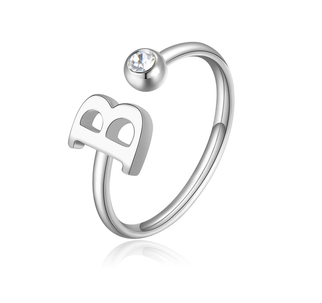 Anello CLICK in acciaio, cristallo bianco, lettera B