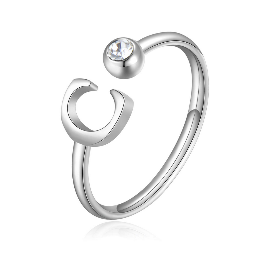 Anello CLICK in acciaio, cristallo bianco, lettera C