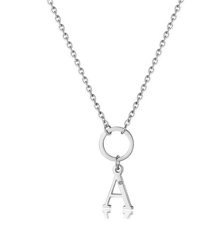 Collana HAPPY in acciaio 316L, lettera A e cristal