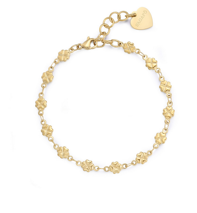 Bracciale CHUNKY in acciaio 316L, finitura pvd color oro con quadrifogli