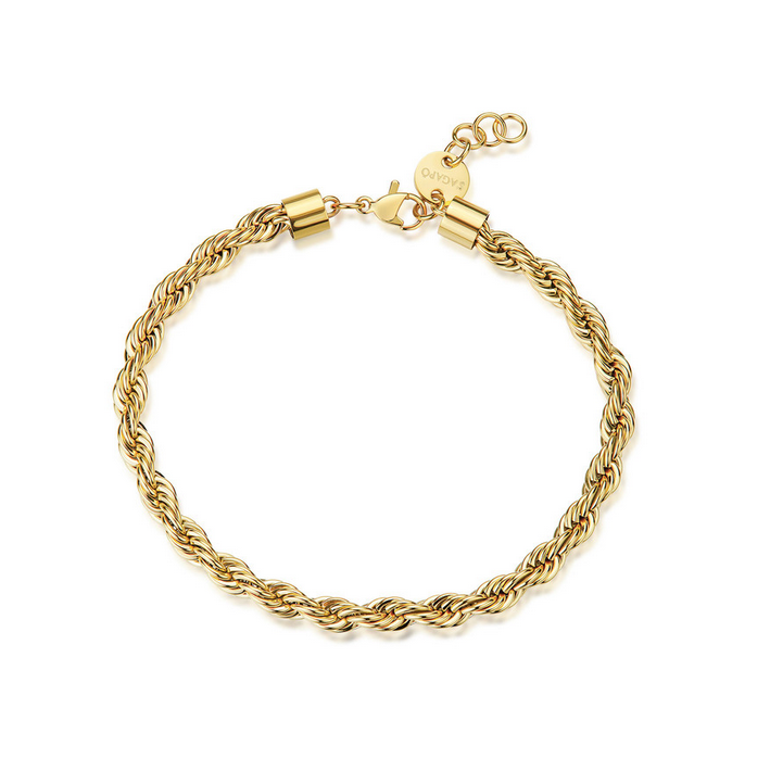 Bracciale catena torchon in acciaio 316L con finitura pvd oro 14K.